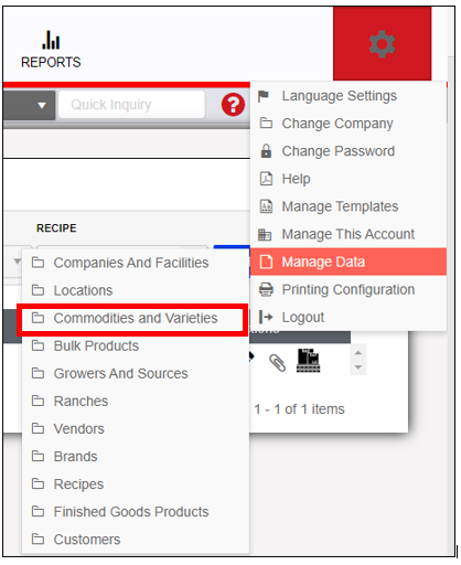 1. go to Settings > Manage Data > Commodities and Varieties.